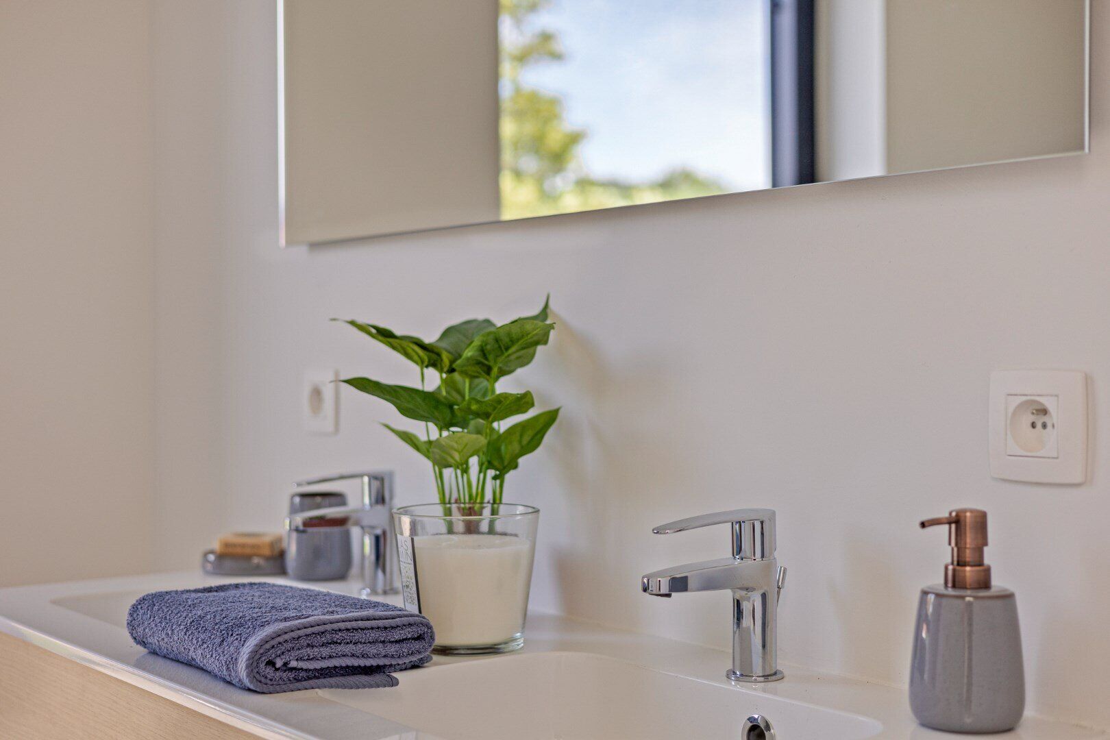 De afgewerkte woningen zijn doordacht en uiterst energiezuinig gebouwd met o.a. vloerverwarming en -koeling, warmtepomp, zonnepanelen, ventilatiesysteem type D, regenwaterrecuperatie, ... . Het E-peil zal maximaal E20 bedragen, waardoor u gedurende 5 jaar geniet van een vrijstelling van onroerende voorheffing.