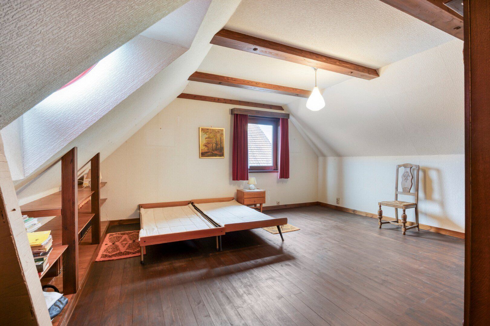 Op de verdieping geeft de nachthal geeft uit op twee uiterst ruime slaapkamers. De grootste slaapkamer zou eventueel omgevormd kunnen worden tot twee slaapkamers en zo dienen als vierde slaapkamer.